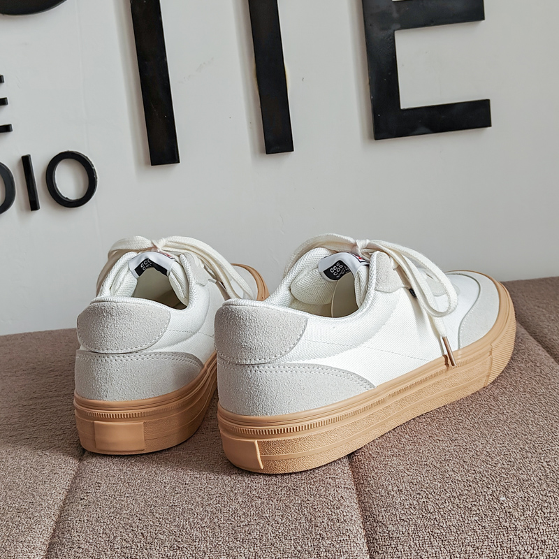 These classic off-white casual shoes combine minimalist design with a touch of vintage style, adding natural elegance to your daily outfits. The upper is crafted from high-quality canvas material, ensuring breathability, comfort, and long-lasting durability for a relaxed wearing experience. The soft off-white tone pairs perfectly with the light tan anti-slip rubber outsole, offering both style and enhanced grip for stability and wear resistance. The detailed stitching and smooth lines add a refined texture to the shoe design. The soft inner lining and cushioned insole provide exceptional comfort, making them ideal for long walks without any discomfort. Perfect for commuting, casual outings, and everyday wear, these shoes are a versatile staple for any wardrobe.