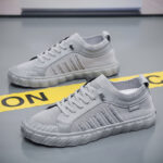 These stylish grey sport casual shoes combine minimalist design with practical functionality, perfect for everyday wear and light activity. The upper features high-quality breathable knit fabric, ensuring a lightweight and comfortable fit while keeping your feet cool and dry. Enhanced with a reinforced protective toe and textured side panel design, these shoes offer both style and functionality. The durable rubber sole provides excellent anti-slip performance and superior traction, delivering a steady stride. With a flexible and lightweight structure, these sneakers guarantee all-day comfort.