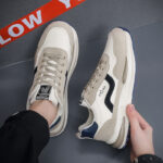 These stylish casual sneakers feature an off-white base with black accents, combining simplicity with a modern design aesthetic. The upper is crafted from premium suede and synthetic materials, offering a soft, breathable, and comfortable feel for extended wear. Equipped with an anti-slip, wear-resistant rubber sole and cushioning for added support, these sneakers ensure stable and comfortable steps. Perfect for daily commutes, casual outings, or light activities, they showcase your effortless fashion sense.