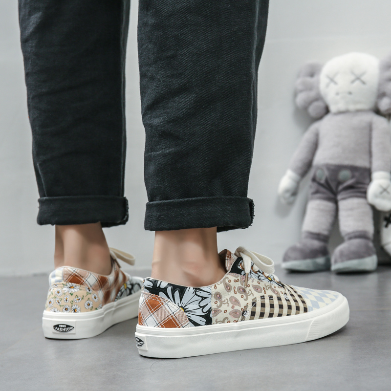 These patchwork-style canvas shoes combine multiple fashion elements, showcasing a unique personality and artistic flair. The upper features a creative blend of vintage floral, checkered, and polka dot patterns in soft, harmonious colors, delivering a one-of-a-kind fashion statement. Made from premium canvas material, the shoes are breathable, durable, and designed for lasting comfort. The soft inner lining ensures a cozy feel, while the lightweight, anti-slip rubber sole offers excellent grip and stability, making them perfect for everyday outings and casual occasions. Whether paired with jeans, skirts, or casual wear, these canvas shoes effortlessly add a touch of style and individuality to any outfit.