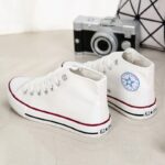 “These classic white high-top canvas sneakers are the ultimate blend of timeless style and everyday comfort. Featuring a durable canvas upper, breathable design, and a sturdy rubber sole, they are perfect for casual outings or completing your streetwear look. With their unisex appeal and versatile design, these sneakers are a wardrobe essential, offering both style and functionality for any season.”