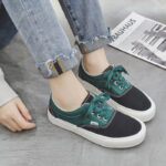 These green-and-black color-block canvas shoes perfectly combine style and classic appeal, delivering a modern casual look. Made from high-quality breathable canvas material, they ensure long-lasting comfort and durability for all-day wear. The vibrant green and black contrast design, paired with fine white stitching, adds a touch of unique fashion. The outsole is crafted from anti-slip, wear-resistant rubber, providing excellent traction and stability, allowing you to walk with ease in any setting. Whether for daily commuting, casual outings, or travel, these canvas shoes are the perfect blend of versatility and style.