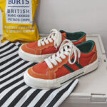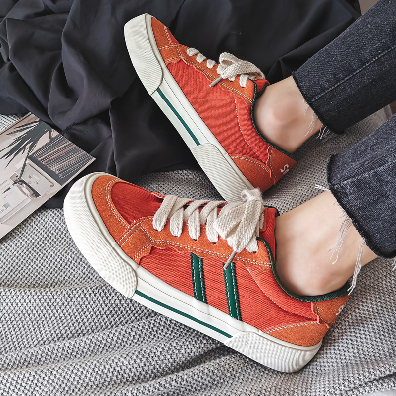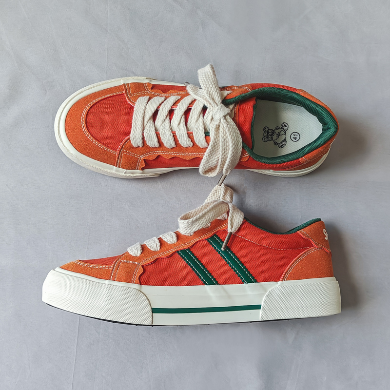 These retro-style casual shoes feature a vibrant orange base accented with classic green stripes, showcasing a unique blend of fashion and streetwear appeal. Crafted from premium canvas material, they are breathable, durable, and comfortable for all-day wear. The sturdy, anti-slip rubber sole ensures excellent grip and wear resistance, while the soft insole and lightweight design provide lasting comfort. Perfect for daily outings, campus life, or street fashion, these sneakers effortlessly complement any outfit, making them a must-have addition to your wardrobe.