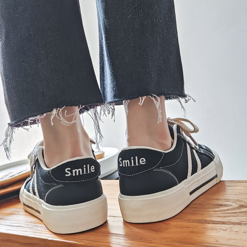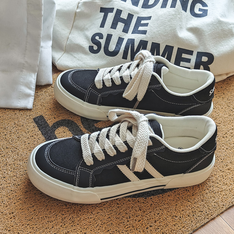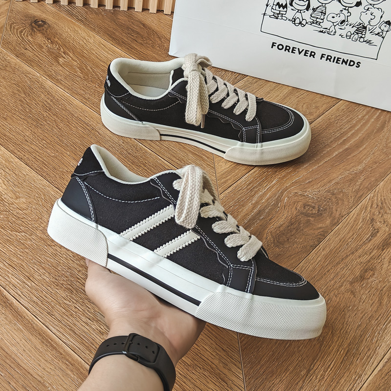 These classic black and white canvas shoes feature a sleek black base with white stripe accents, delivering a stylish and understated retro vibe. Crafted with high-quality canvas material, they are breathable, durable, and comfortable for long-term wear. The soft insole and thick rubber outsole provide excellent cushioning and anti-slip performance, ensuring stability and comfort all day. With their versatile design and timeless color combination, these shoes are perfect for daily commutes, casual outings, or trendy streetwear looks.