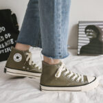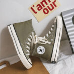 Combining retro aesthetics with modern comfort, these army green high-top canvas shoes are durable, stylish, and versatile. Elevate your daily style with this essential pair of sneakers.