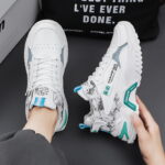 trendy sports sneaker blends street style with modern design, featuring high-quality leather and breathable mesh panels for durability and comfort. The unique black, white, and gray color-block design, complemented by bold trend-inspired logos and detailed accents, makes it stand out from the crowd. The thick, non-slip outsole provides excellent support and stability, perfect for both everyday wear and athletic activities. Whether you’re a fashion enthusiast or someone who prioritizes comfort, this sneaker is a must-have to help you effortlessly embrace urban style. Get yours now and step into a new chapter of fashion!