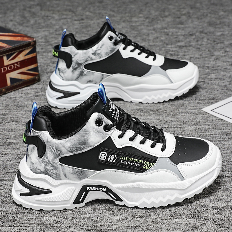 trendy sports sneaker blends street style with modern design, featuring high-quality leather and breathable mesh panels for durability and comfort. The unique black, white, and gray color-block design, complemented by bold trend-inspired logos and detailed accents, makes it stand out from the crowd. The thick, non-slip outsole provides excellent support and stability, perfect for both everyday wear and athletic activities. Whether you’re a fashion enthusiast or someone who prioritizes comfort, this sneaker is a must-have to help you effortlessly embrace urban style. Get yours now and step into a new chapter of fashion!