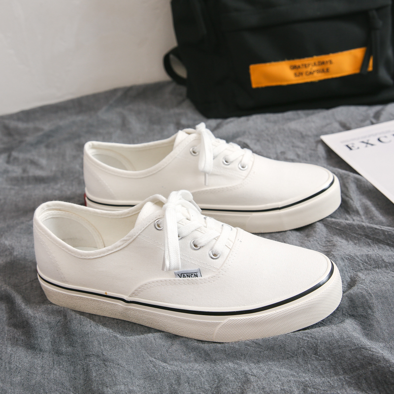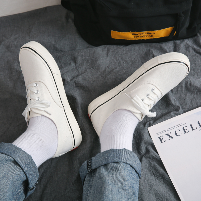 These low-top white canvas shoes feature a timeless minimalist design, showcasing classic fashion that never goes out of style. The upper is crafted from high-quality canvas material, offering breathable comfort for extended wear. The durable rubber outsole provides excellent anti-slip grip and wear resistance, ensuring stable support with every step. Accented with a subtle black trim, these shoes add a touch of understated style, perfect for casual wear, campus life, or street fashion. Whether paired with jeans, shorts, or skirts, these canvas shoes are the ultimate versatile wardrobe essential.