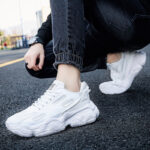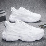 These all-white retro chunky sneakers combine trendiness and comfort, featuring a sleek yet bold design that’s perfect for streetwear and everyday outfits. The upper is crafted from high-quality synthetic leather and breathable mesh, ensuring durability and ventilation. The thick sole provides exceptional support and cushioning, making them ideal for daily commutes or sports activities, delivering unparalleled comfort with every step.