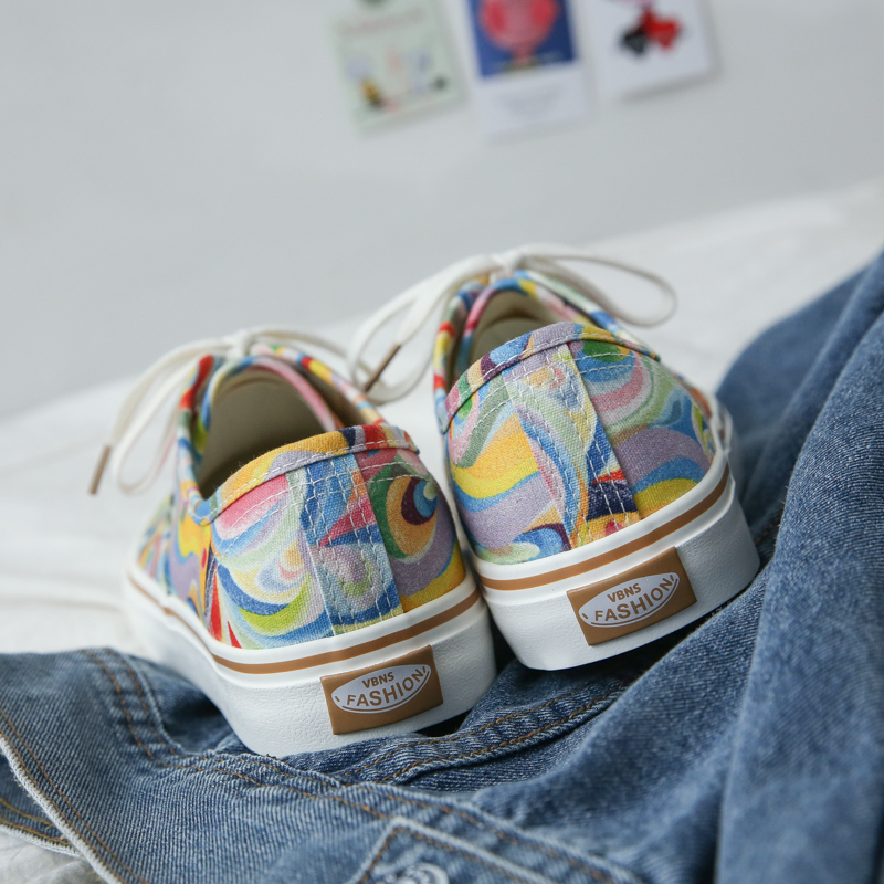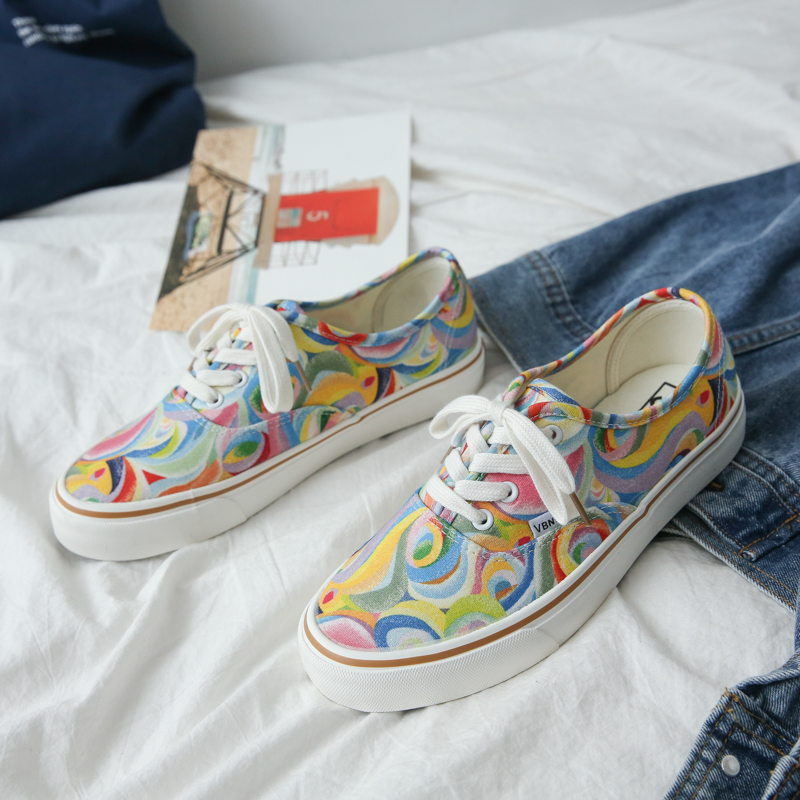Rainbow graffiti couple plate shoes tide shoes street low-top cloth shoes-vt68