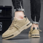 These stylish casual men’s sneakers are crafted with high-quality suede material and feature exquisite stitching, exuding a modern urban vibe. The sleek and clean design is highlighted by the unique “Fashion” lettering, adding a trendy touch and showcasing an unparalleled sense of style. The outsole is made of durable, anti-slip rubber, ensuring excellent grip and comfort, making them perfect for various everyday occasions. Whether it’s casual streetwear, outdoor activities, or daily work, these shoes can handle it all effortlessly. The soft and comfortable insole guarantees a lightweight feel even after prolonged walking, truly combining fashion and functionality. A must-have trendy essential for urban men.