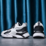 These sneakers feature a classic black-and-white color scheme, delivering a sleek and trendy look. Made with high-quality synthetic leather, they are durable and easy to maintain. The streamlined design adds a dynamic and fashionable vibe. With soft insoles and lightweight soles, these sneakers provide exceptional comfort, making them perfect for daily commutes, casual outings, or streetwear styling.