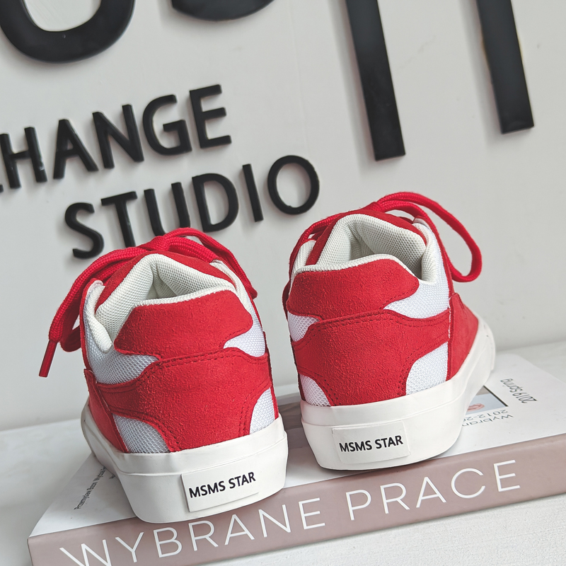 These red sporty canvas shoes perfectly blend energy and style, designed for those who value fashion and comfort. The upper combines premium suede and mesh materials, offering a soft touch and breathable comfort for all-day wear. The vibrant red color paired with wide laces adds a bold, standout look, ensuring you make a statement wherever you go. The anti-slip, wear-resistant rubber sole provides excellent traction and stability, making them suitable for casual outings, workouts, or streetwear styling. Whether paired with jeans, sportswear, or trendy street fashion, these canvas shoes are the perfect highlight for your outfit.