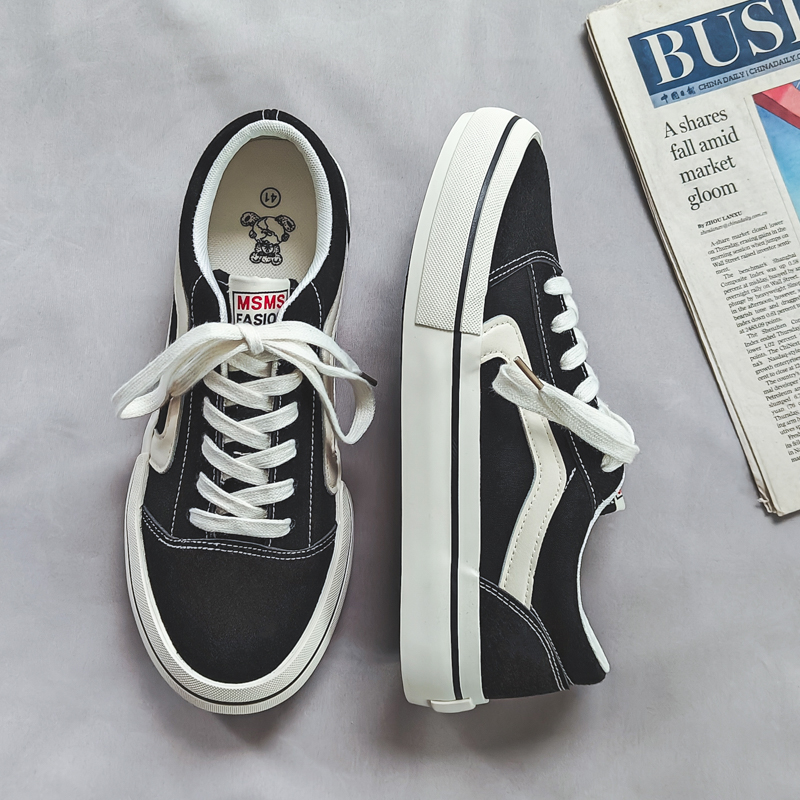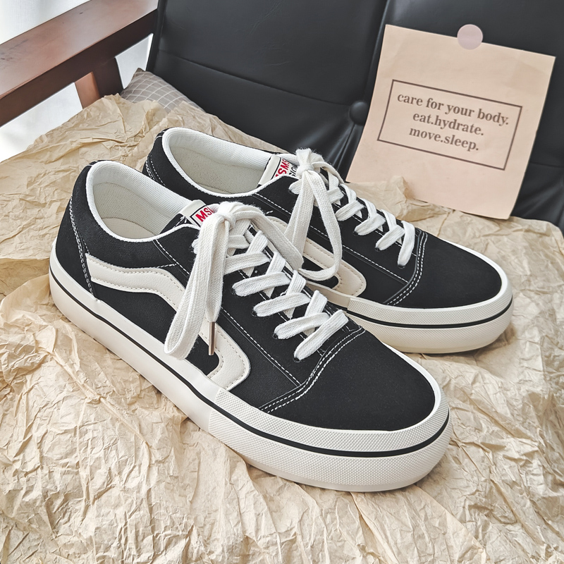 These classic black and white sneakers blend timeless style with modern comfort, making them a wardrobe essential for anyone seeking practicality and trendiness.