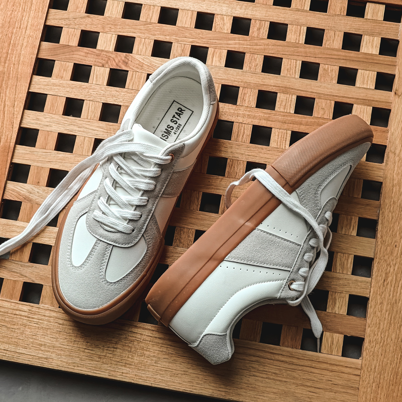 These white and light gray casual shoes draw inspiration from minimalist design and vintage style, offering the perfect combination of comfort and fashion. The upper features a blend of high-quality synthetic leather and suede materials, delivering a refined texture that’s durable and easy to clean. The classic brown rubber outsole adds a retro touch, showcasing understated elegance and timeless appeal. The soft, breathable inner lining conforms to your feet for all-day comfort, while the anti-slip, wear-resistant sole ensures stability and safety. Whether for daily commuting, casual outings, or trendy styling, these versatile shoes will keep you light on your feet and effortlessly stylish.