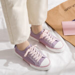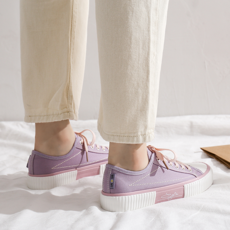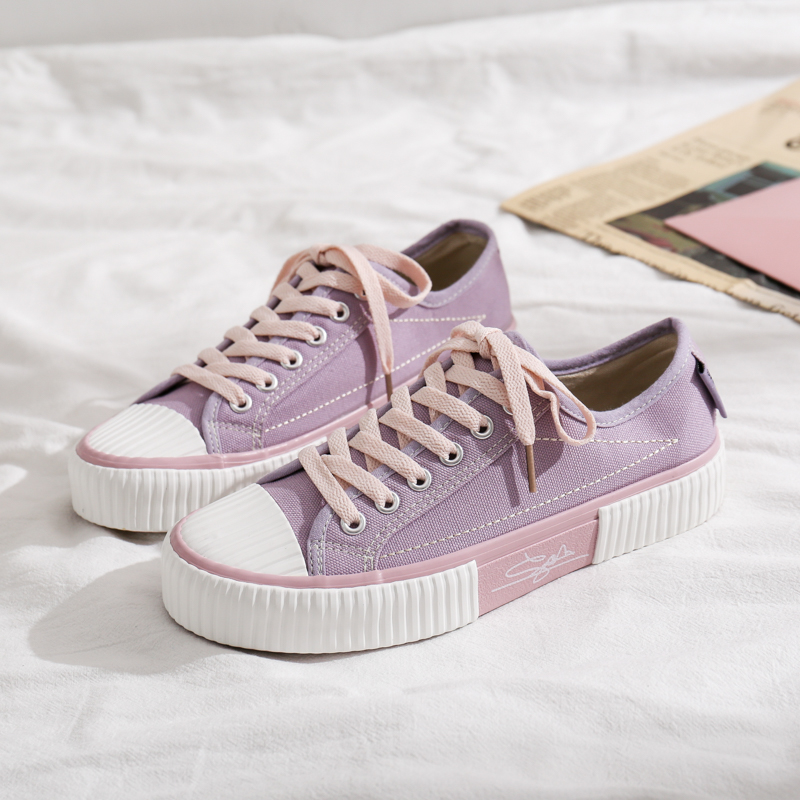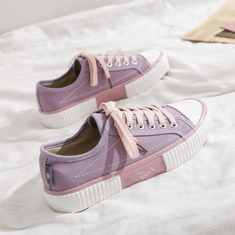 - Two-Tone Design, Unique Style: The classic violet canvas upper paired with a beige toe cap and Pink thick sole creates a bold, fashionable look for trendsetters.